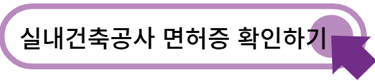 - 실내건축면허 : 1500만원 이상인 인테리어 공사는 실내건축공사업 면허를 보유한 업체만 시공할 수 있습니. 실내건축공사 면허를 보유하지 않은 업체와 계약 할 경우, 공사 지연이나 하자 발생에 따른 피해에 대해 법적으로 보호받기가 어렵습니다.